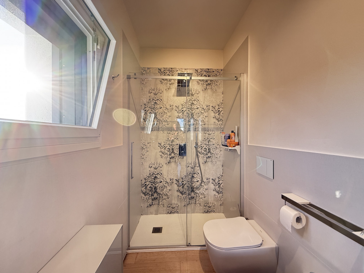 L'immobile si trova al quinto e ultimo piano con unico accesso sul pianerottolo tramite ascensore, è l'unico al piano di una moderna palazzina costruita nel 2018 dalla ditta Osanni, che vanta tutti i più elevati standard di edilizia attuali, per garantire la massima prestazione energetica in classe A3, con un impianto che copre tutti i consumi.