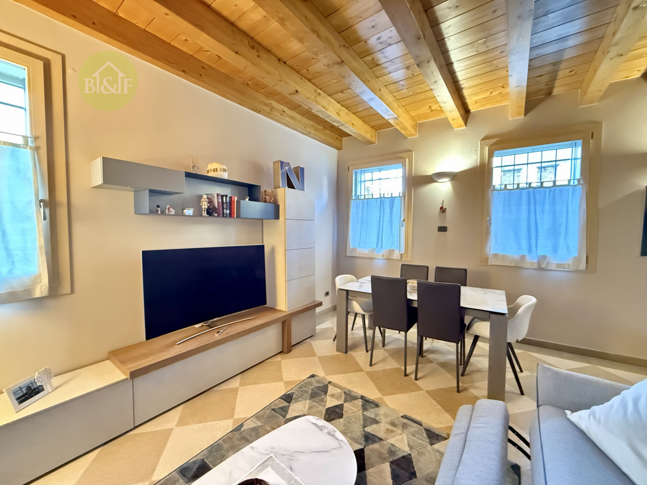 LEGNAGO centro: casa d'angolo in centro storico, completamente ristrutturata a nuovo. Posizionata nel cuore del centro storico, dove a piedi si possono comodamente raggiungere tutti i sevizi presenti, casa d'angolo indipendente ristrutturata completamente con elevato standard qualitativo. L'ingresso di questa abitazione é su via G. Marconi, all'interno siamo subito accolti da un ambiente caldo e finemente ristrutturato: il living é molto luminoso grazie al doppio affaccio ed alla presenza di tre finestre, lo spazio é adeguato ad accogliere un generoso divano con la parte TV e rimane spazio per un tavolo da sei persone; proseguendo troviamo la cucina separata e abitabile, qui l'isola centrale caratterizza l'ambiente, lo rende perfetto per condividere pranzi e cene in famiglia, troviamo inoltre un utile ripostiglio con spazio per la centrale termica e vano tecnico; un ampio corridoio é l'ideale per posizionare armadi a parete e ci conduce al bagno del piano terra completo di doccia e zona lavanderia; infine un piccolo sottoscala offre spazio per una scarpiera o altro, sempre utile per l'ordine della casa. Mediante la raffinata scala in pietra, studiata e realizzata su misura, si si sale nella zona notte, qui troviamo due camere da letto matrimoniali, su una di queste un originale soppalco offre uno spazio accessorio da destinare a cabina armadio, studio o un salottino privato della camera padronale, l'ambiente é rilassante grazie anche alle tonalità delle finiture: avorio, legno sbiancato e naturale; il secondo bagno, anche questo completo e con una grande doccia offre confort alla zona notte che si arricchisce di un ulteriore spazio sottotetto utile come ripostiglio o cabina armadio.
