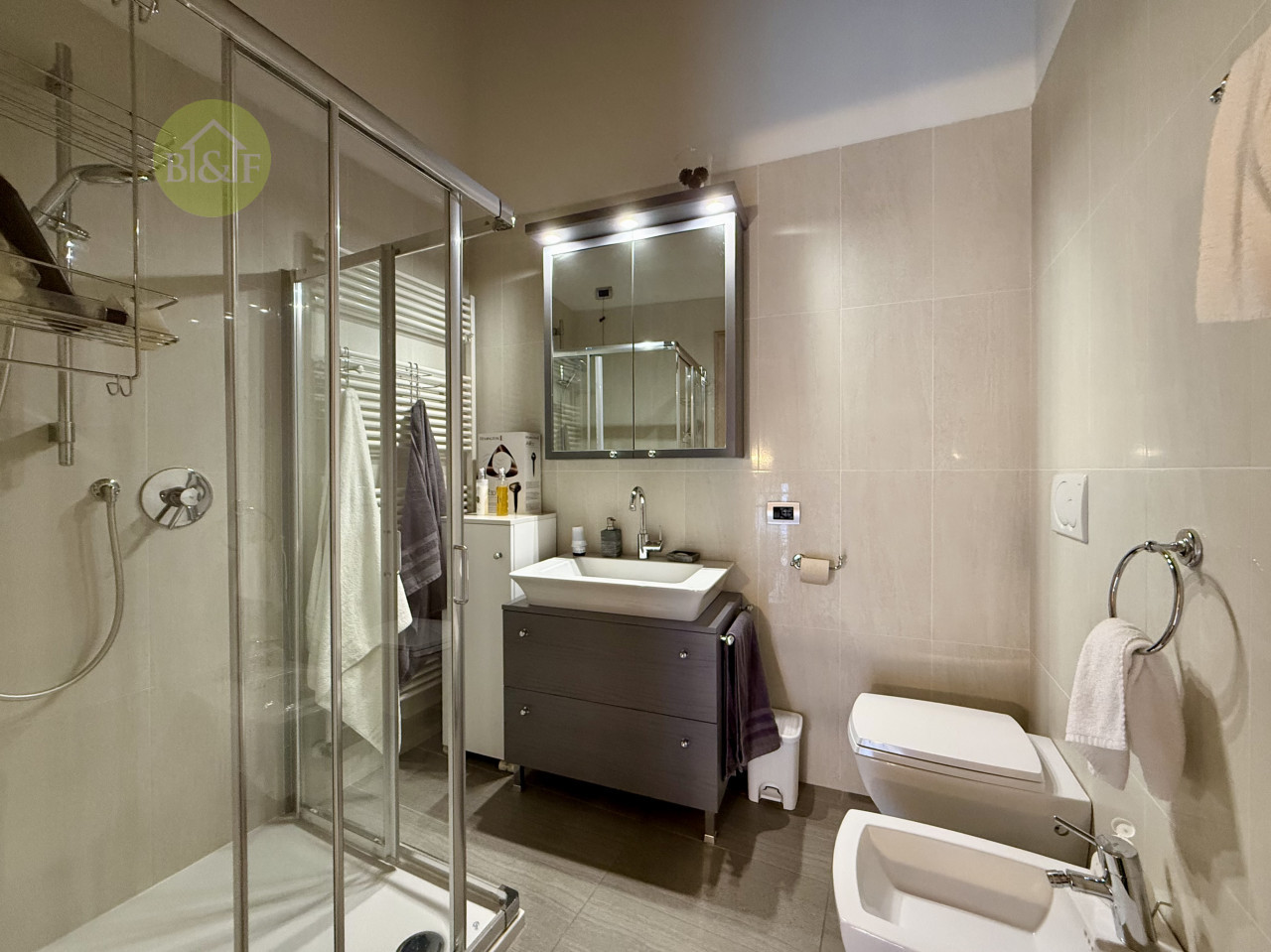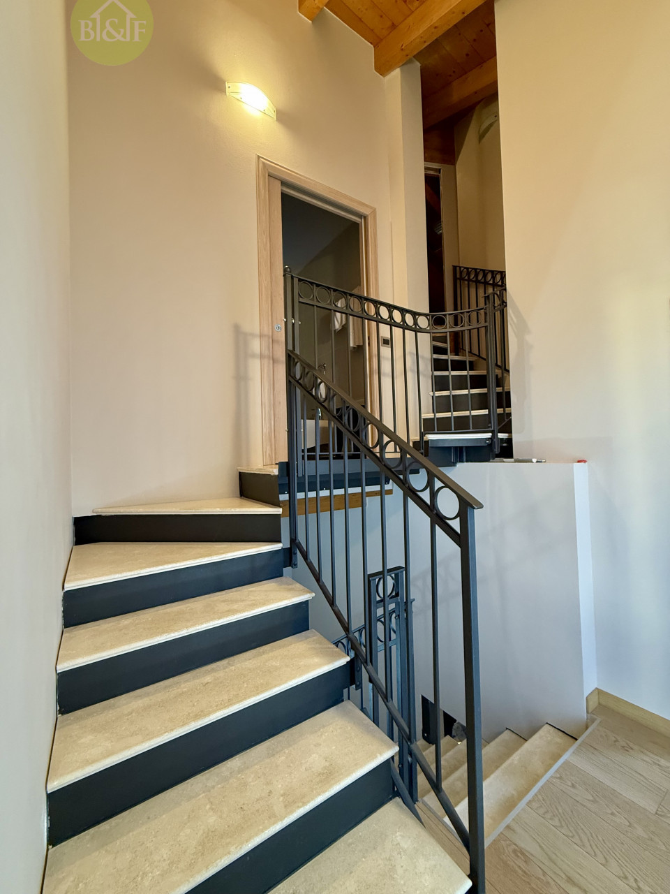La ristrutturazione ha interessato totalmente l'abitazione, a partire dalle fondazioni che sono state sapientemente rinforzate e di conseguenza tutta la struttura: isolamenti termici ed acustici sui muri perimetrali per garantire il massimo confort, serramenti interni ed esterni fatti su misura, pavimenti in gress porcellanato nella zona giorno, nella zona notte in pregiato legno posato da una rinomata azienda locale, l'impianto di riscaldamento é a pavimento, suddiviso nei i vari ambienti e troviamo l'impianto solare termico studiato e realizzato con apposita caldaia, troviamo inoltre l'impianto aspirapolvere canalizzato in ogni stanza. Adiacente l'abitazione troviamo numerosi parcheggi auto oltre all'area parcheggio del "parco comunale", se invece fosse necessario un box privato, il venditore dispone di un grande garage di circa 100 mq a poca distanza che può essere aggiunto alla vendita.