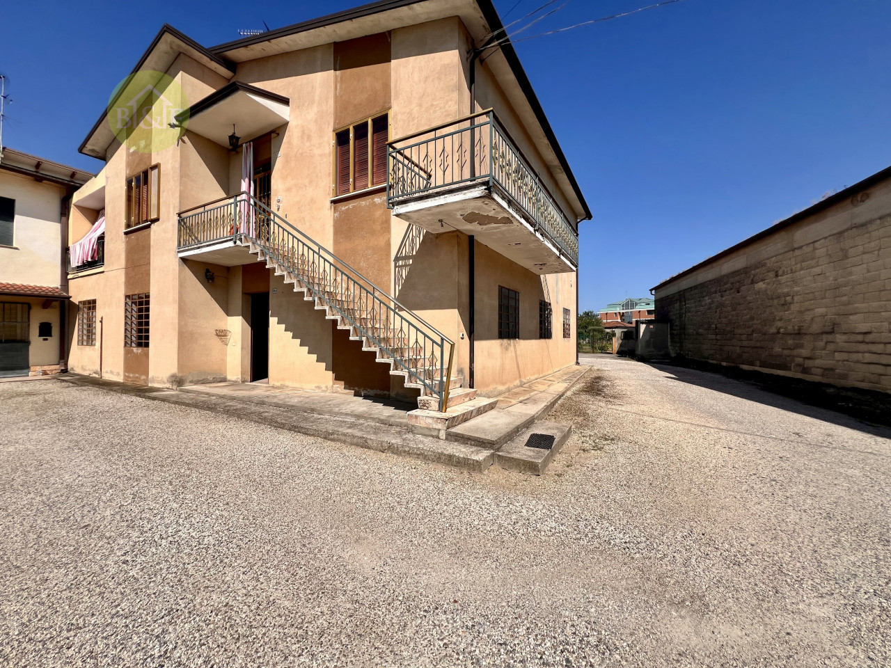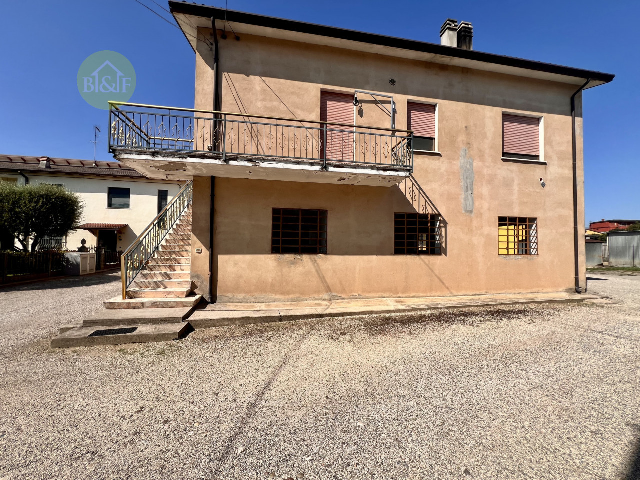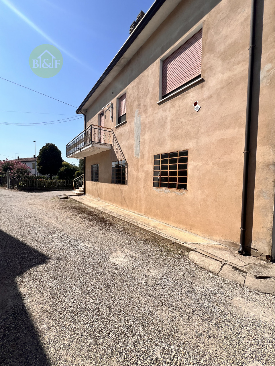 CEREA, A pochi minuti dal centro del paese e comoda a tutti i principali servizi, proponiamo ampia porzione di villa a schiera d’angolo, disposta su due livelli interni. La distribuzione degli spazi è la seguente: Piano terra molto ampio, attualmente utilizzato come taverna con cucina funzionale, ideale per pranzi e cene estive. L’ambiente è accatastato come laboratorio, quindi interessante anche per chi necessita di uno spazio da destinare ad attività artigianali o professionali. Piano primo e ultimo, accessibile tramite comoda scala esterna, dove si sviluppa un appartamento spazioso composto da: quattro camere da letto una di esse collegata a un'altro balcone sempre privato , tre matrimoniali e una cameretta, più una comoda stanza usata come stenditoio e locale tecnico caldaia, bagno finestrato completo di sanitari, cucina abitabile in legno su misura con uscita su un balconcino, sala da pranzo ubicata in un’ampia veranda. Esternamente la proprietà comprende un terreno edificabile di circa 1.700 mq e un garage triplo in profondità. La soluzione è ideale per chi cerca ampi spazi sia interni che esterni, pur restando vicino al centro del paese.
