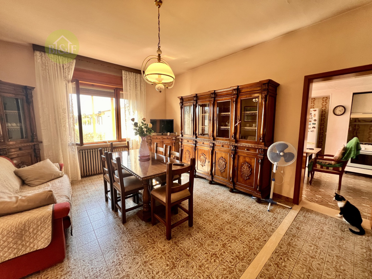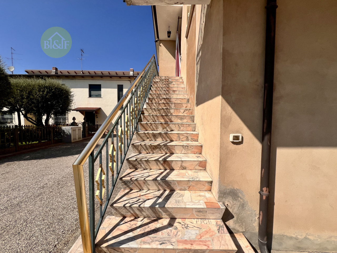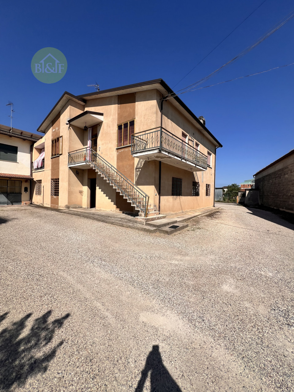 CEREA, A pochi minuti dal centro del paese e comoda a tutti i principali servizi, proponiamo ampia porzione di villa a schiera d’angolo, disposta su due livelli interni. La distribuzione degli spazi è la seguente: Piano terra molto ampio, attualmente utilizzato come taverna con cucina funzionale, ideale per pranzi e cene estive. L’ambiente è accatastato come laboratorio, quindi interessante anche per chi necessita di uno spazio da destinare ad attività artigianali o professionali. Piano primo e ultimo, accessibile tramite comoda scala esterna, dove si sviluppa un appartamento spazioso composto da: quattro camere da letto una di esse collegata a un'altro balcone sempre privato , tre matrimoniali e una cameretta, più una comoda stanza usata come stenditoio e locale tecnico caldaia, bagno finestrato completo di sanitari, cucina abitabile in legno su misura con uscita su un balconcino, sala da pranzo ubicata in un’ampia veranda. Esternamente la proprietà comprende un terreno edificabile di circa 1.700 mq e un garage triplo in profondità. La soluzione è ideale per chi cerca ampi spazi sia interni che esterni, pur restando vicino al centro del paese.